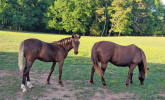 May 23, 2025- Last night at 6 PM Magic had his last nursing session with his dam. He is now on the wagon ;-) I did not sleep but a few hours last night worrying about them but so far so good and neither have been fussy so far. Magic has been routinely separated from Charli every afternoon for the last month or so, which helped the process immensely. I prefer this slow weaning method over the more drastic cut offs
