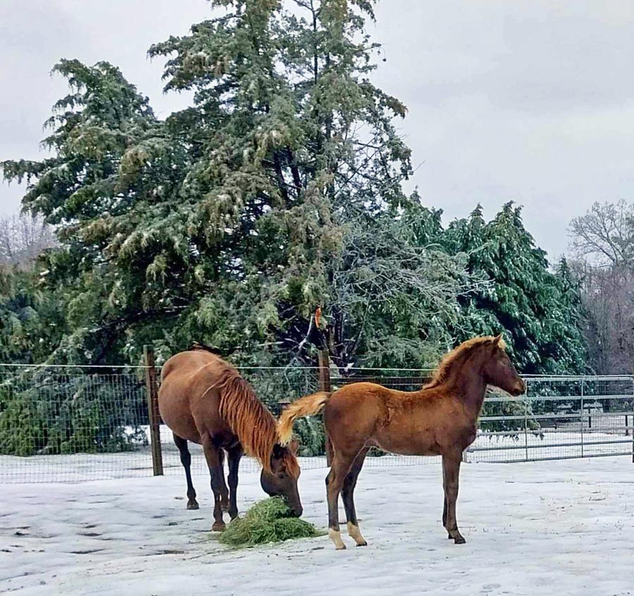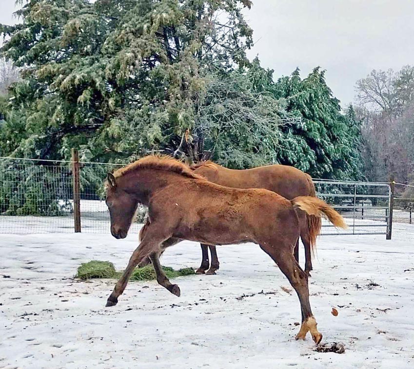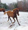 January 11, 2025- After spending a day and a half in the barn due to snow and sleet the ponies were set free this morning. The predicted frolicking did occur (as my heart lept to my throat due to the slippery conditions!). Everyone stayed upright, thank God. Most of my foals do not see snow until they go to their new homes,