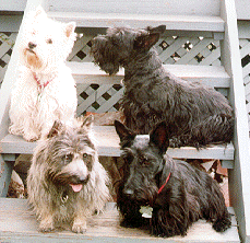 From above left: my mother's Westie, Wee Bonnie Lassie; my sister's Scottie, Hil-Ray's Ink McMuffin;