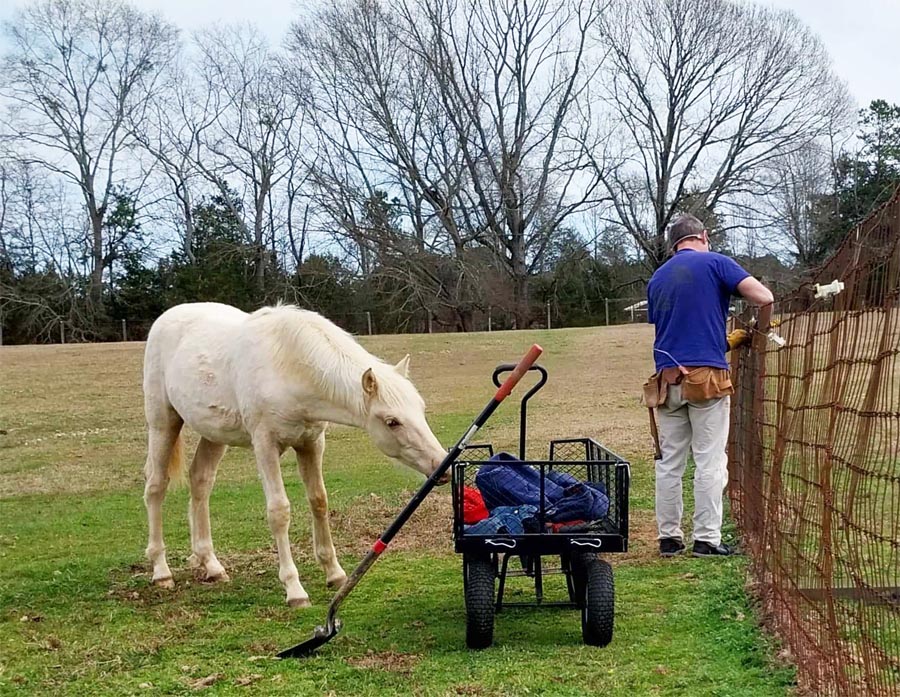February 25, 2024- Nothing like a little extra assistance from an enthusiastic Morgan when you're out fixing broken fence posts!