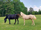 August 20, 2023- Since Callie, Louis' mother, left to go home- meaning no potential fence fighting between Charli and Callie- I was able to move Stony and Charli in a field next to Louis and his babysitter Kyrie. Stony was fascinated by Louis. Louis was not as excited as Stony, much to Stony's dismay. He stood at the fenceline just talking to Louis,